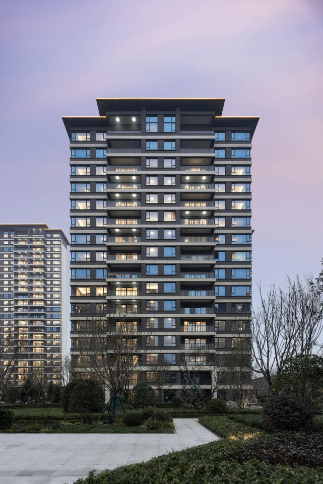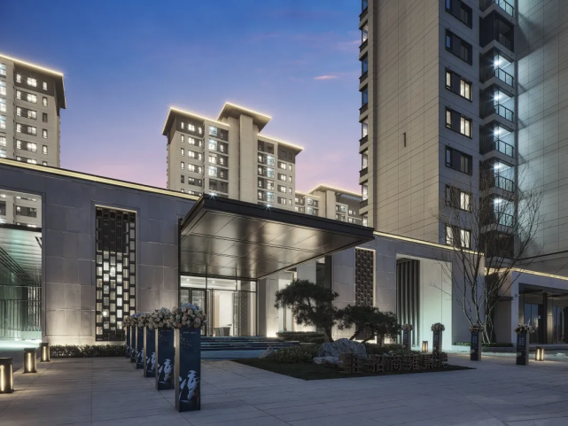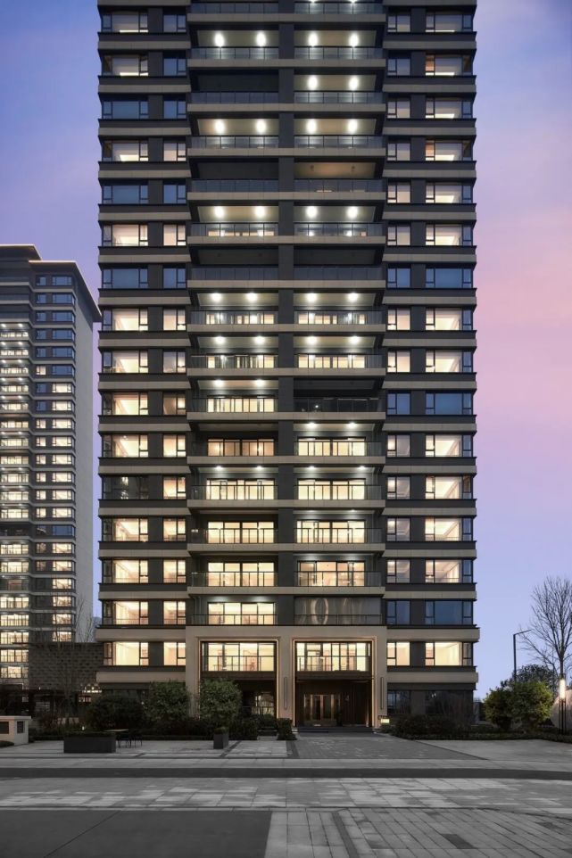 项目的外立面用大面积的玻璃与金属线条,不仅增加了立面的通透感,也让里面生活的业主拥有更多景观面、通风和光照。具象化的外立面视觉传达,已足够超脱于西安市场上绝大多数建筑画像。其采用历久弥新的新亚洲建筑风格,外形简洁且灰白,现代化美感十足。
