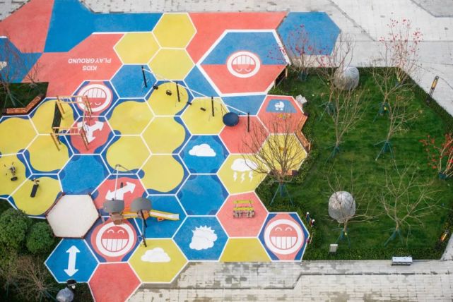 园子里的游乐场被布置在了临近树阵的地方,光照强度刚刚好,风吹过来的时候,恰好是被一侧的树阵给弱化了。走进看的时候,还发现游乐场有各种不同的功能,能给不同年龄段的孩子都提供恰当的设备,这一点很好。