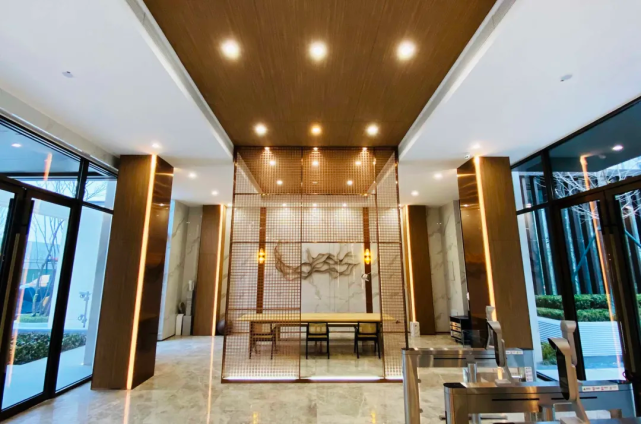 进入小区大堂,犹如进了酒店大堂,服务台、快递处、等候休息区、入口闸机、中央空调一应俱全,作为归家的第一站这里无不体现出了超强的“仪式感”。
