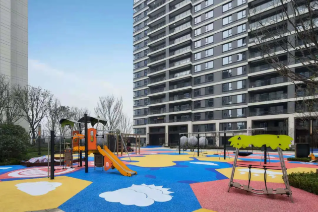 例如沿着园路的塑胶跑道,或是石材铺就的园林小道走过一段之后,你会发现全区功能划分得错落有序,中央花园区、儿童游乐设施、长者空间、园艺疗养区、健身社交场等区域各具特色。