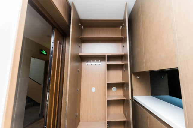 还有很多细节之处,都是加分项,比如入户玄关,招商·雍景湾在入户玄关做了一个“L型”通顶柜体,不只是储藏空间变大,内部也分割成了不同大小的空间,不管是外套、包包,还是其他小物件,都有地方存放。