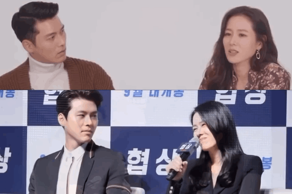 有一次采访因为盯太久了,还被孙艺珍用胳膊肘顶了下,提醒他看镜头!