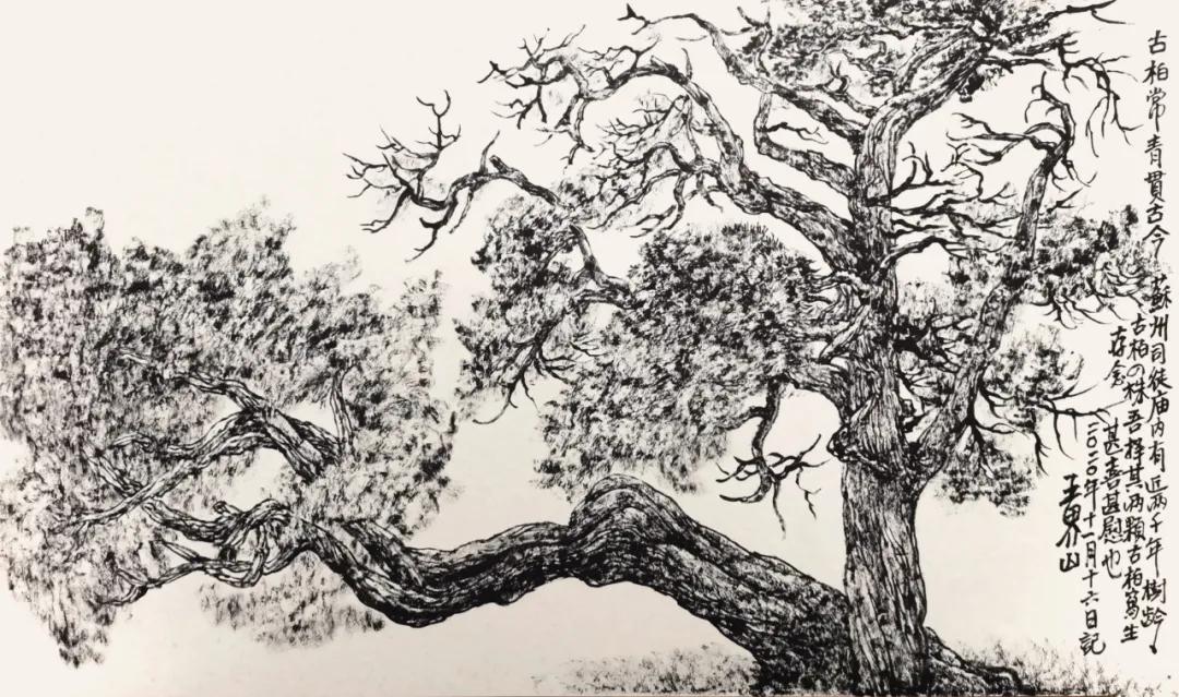 王界山 《古柏长青贯古今》 焦墨