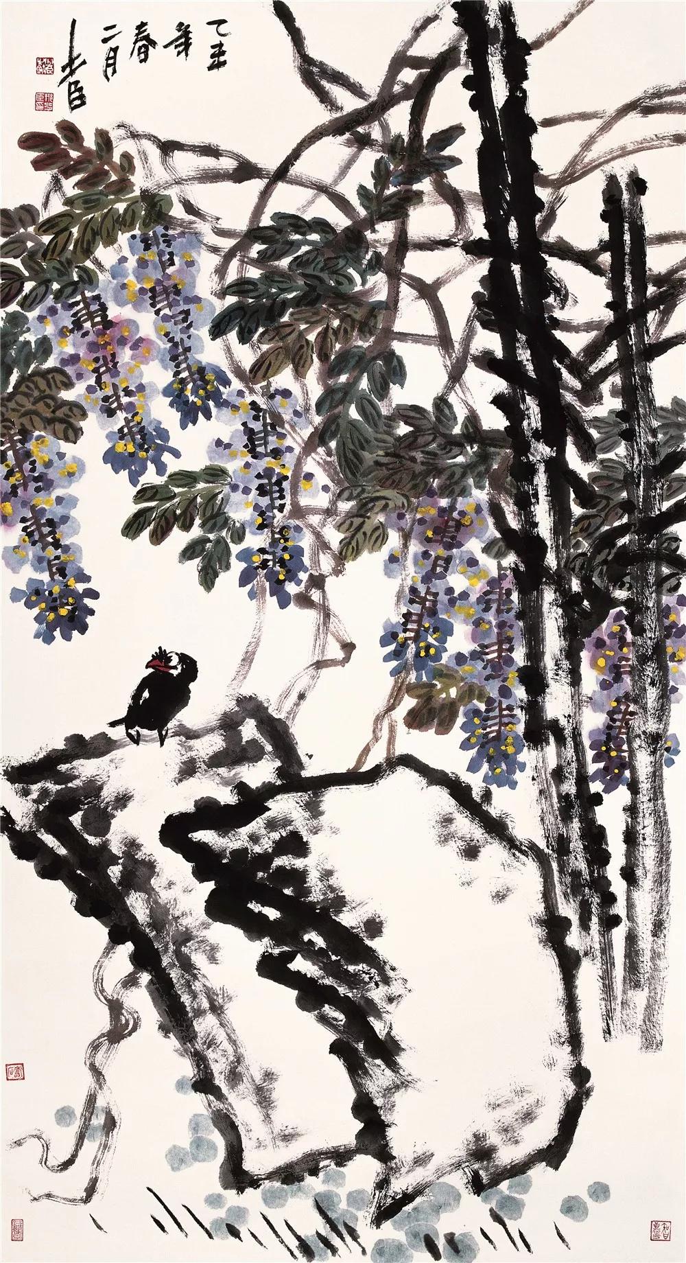 邢少臣 《春花如锦洒人间》 焦墨
