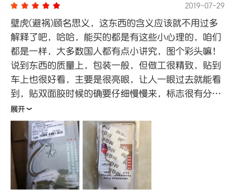 比如很多人会在车上贴一个银色的壁虎标志,这本是奥迪quartto四驱系统的标志,意思是车能像壁虎一样紧贴地面。但后来国人觉得壁虎的谐音有避祸、庇护之意,于是在车上贴壁虎在国内流行起来。