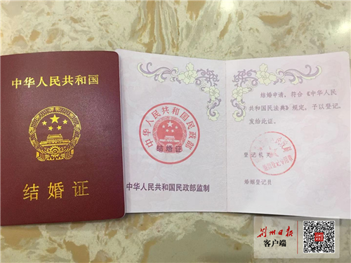 今年1月1日起,全国将启用新的婚姻登记证。在沙市区民政局婚姻登记处,记者看到了新版结婚证和离婚证,证件外观与之前版本无异,只是证件内容中登记申请依据均由《中华人民共和国婚姻法》改为《中华人民共和国民法典》。