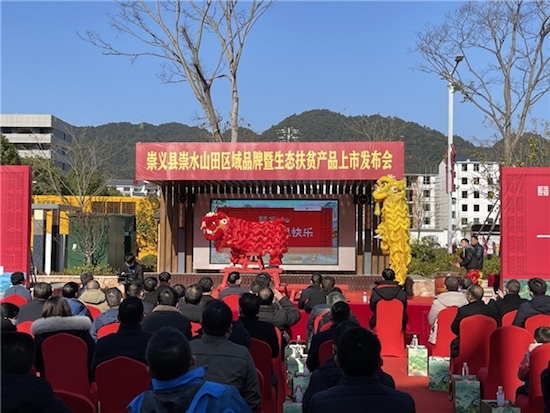 1月1日,崇义“崇水山田”区域品牌暨生态扶贫产品上市发布会在江西省赣州市崇义县北麓湾三产融合示范产业园举办。崇义县相关各部门负责人以及农业领域和乡村振兴专家、崇天然食品有限公司战略合作伙伴、“崇水山田”品牌渠道商、加盟商、代理商等参加此次发布会。
