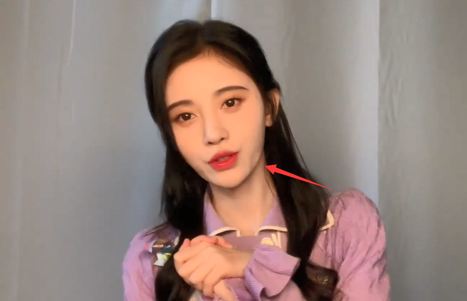 另外一大问题就更明显了,鞠婧祎安静的时候脸部线条还算顺畅流畅,面部也很饱满。而一旦她开口,脸右边有一处很明显的凹陷,随着她的动作时隐时现,想忽视都难。