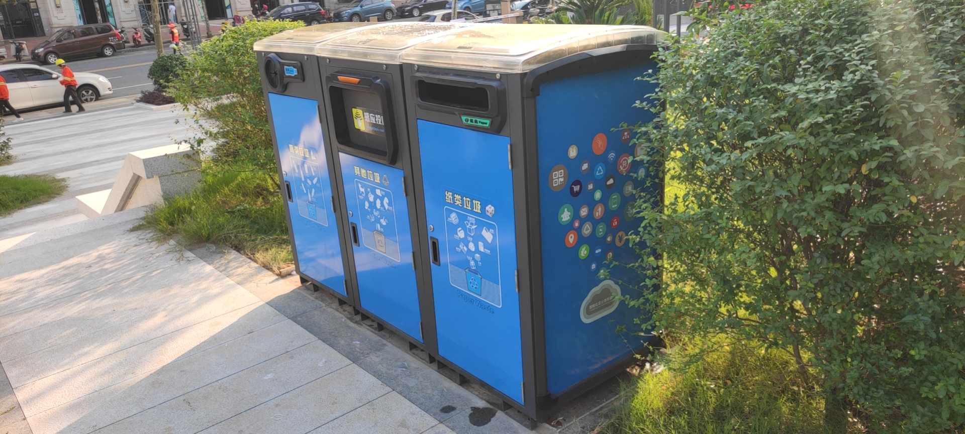 “大胃王”的外部设计简洁硬朗、美观大气,开口部分设计的封闭式箱门,投递垃圾时,自动开启箱门,垃圾投递后,箱门迅速关闭,这样的全密封设计从外面完全看不到废弃物,也闻不到内桶垃圾散发的异味,既可以避免小动物乱翻垃圾,更能杜绝箱内垃圾在大风天气随风乱飞,能够有效解决垃圾箱周围的环境卫生问题。