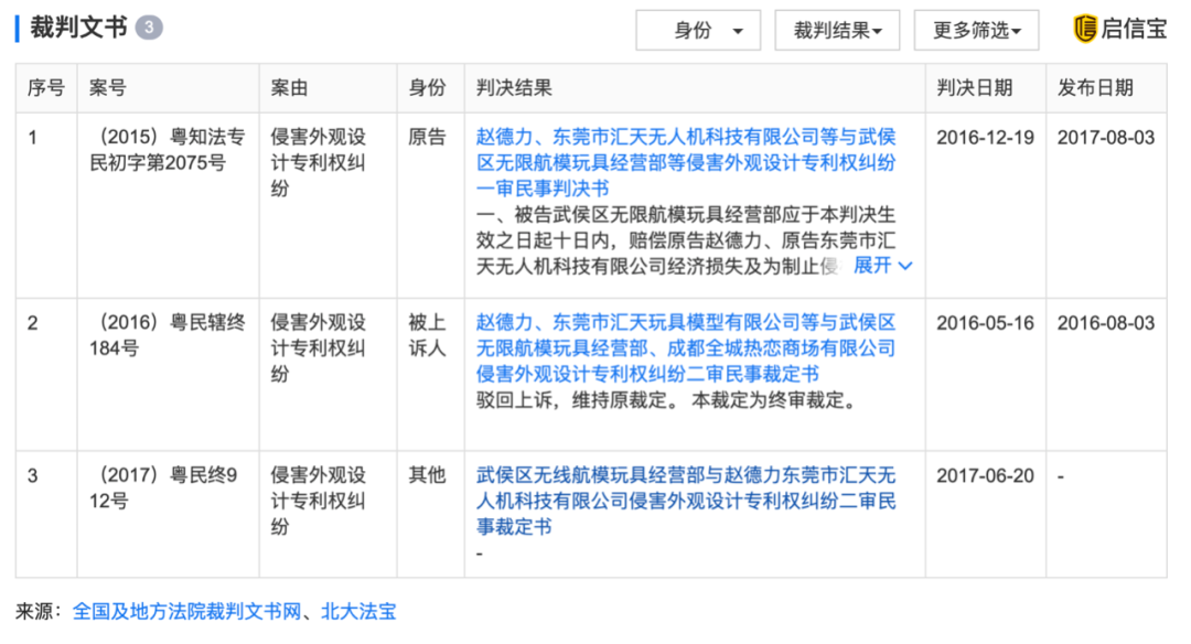 2013年,整个航模市场进入一个高点。同年,赵德力在东莞塘厦镇成立“东莞市汇天玩具模型有限公司”,注册资金10万元,主要经营玩具模型研发与产销、货物与技术进出口。2014年后,航模玩具市场竞争出现白热化,淘宝成为航模玩具市场最大的集散地,产品同质化导致行业利润大幅缩水。为了在市场上站住脚跟,也为了防止同行抄袭,赵德力前后共研发出5款航空模型。2015年赵德力还申请了“超微型燃油无人直升机”专利。申请专利一个月后,他将一家在淘宝销售同类航模玩具的成都公司告上法庭,理由是侵害外观设计专利权。尽管法院判决赵德力胜诉,但胜诉结果并没有令他满意,这场官司一直持续到2017年。