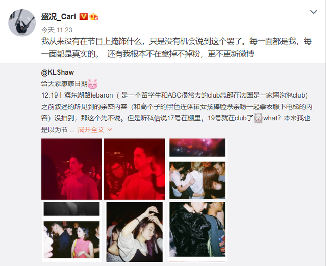 每一面都是真实的我?所以盛况这个意思是默认了自己去夜店和美女亲密的事实?