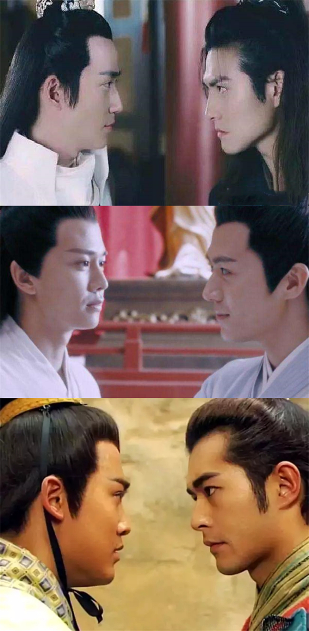 影视剧中,眉骨突出和眉骨低平的男演员也常常会出现侧脸同框,这样的对比可以说是"处刑现场"。比如《寻秦记》古天乐(眉骨突出)与林峰(眉骨低平),比如《大唐荣耀》任嘉伦(眉骨低平)与茅子俊(眉骨突出),又比如《新萧十一郎》朱一龙(眉骨低平)与严屹宽(眉骨突出)。
