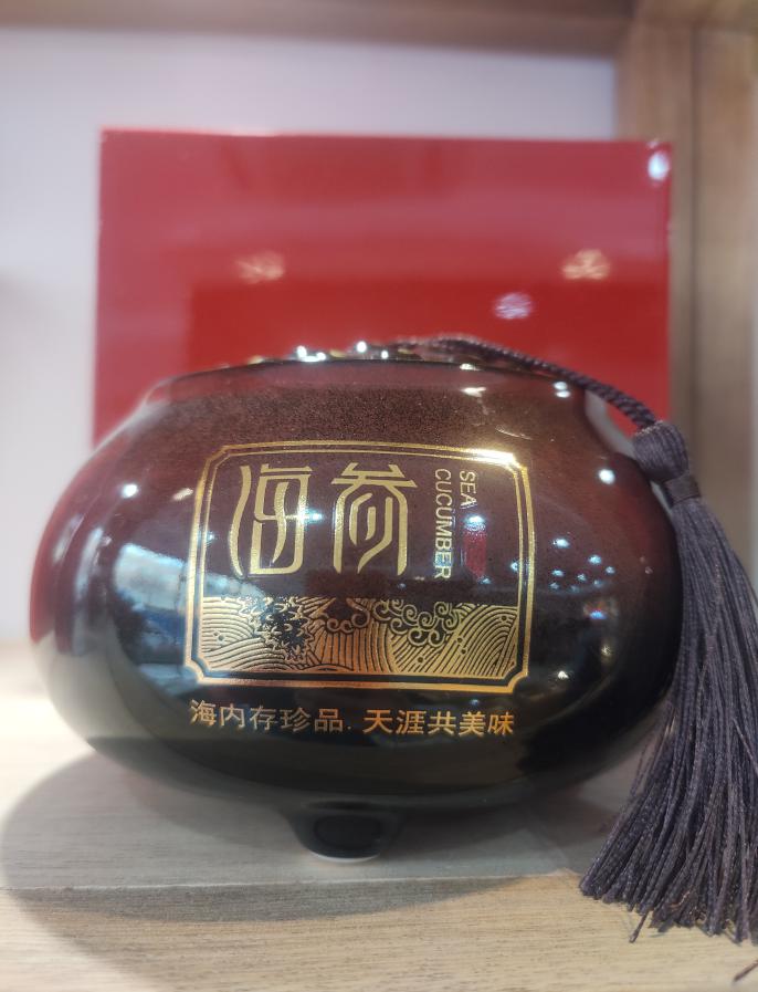 橘色是充满活力,朝气,鲜艳的颜色,从正门走进去,两边整齐有序的货架不难看出店内的用心,地面崭新一尘不染,陈列商品分别为大连野生淡干海参、印尼燕窝、秘鲁深海鱼胶。而中间摆放的则是收藏级别的鳘鱼胶