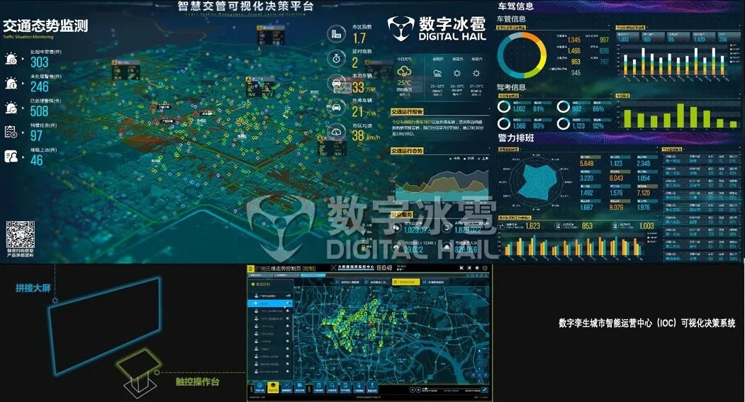 数字冰雹城市智能运营中心IOC具备便捷、高效、一体化的交互方式,能够通过统一的控制终端,对多屏幕、多系统显示内容进行集中的交互操作,包括:大屏整体显示布局切换、多屏联动数据分析、对象浏览、点选、筛选、圈选等。同时,控制终端要不仅要能够对单一系统进行操控,还可以对指挥中心多系统内容进行综合集中控制,避免多系统各自为政的尴尬局面,让用户获得便捷的使用体验,最大限度提升交互查询效率。