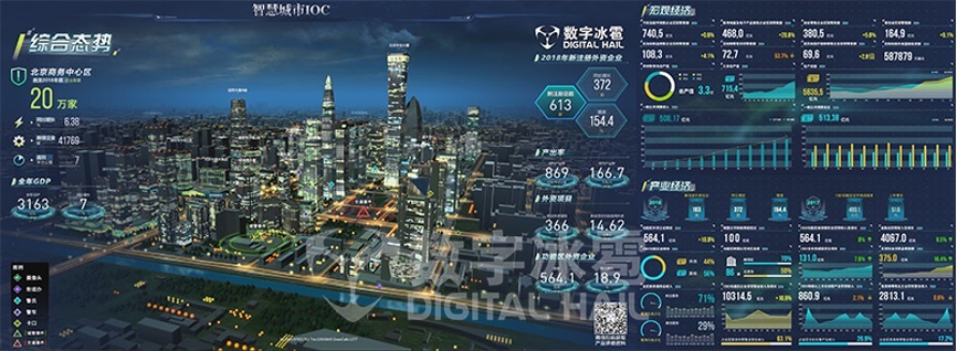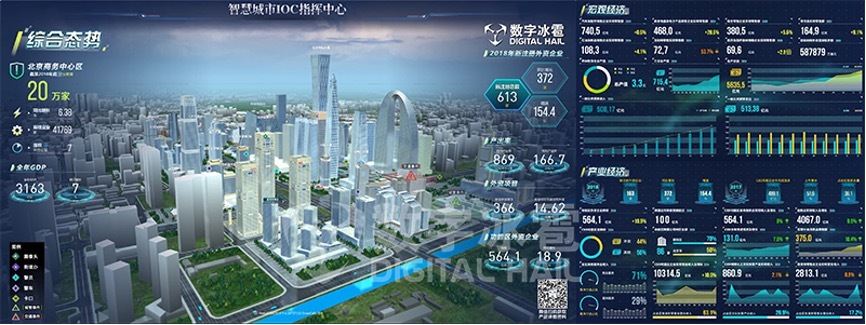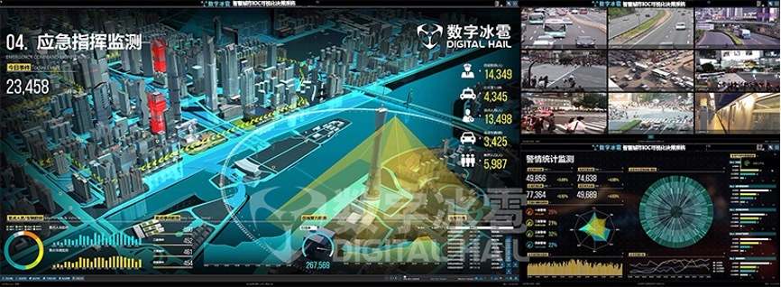 数字冰雹数字孪生•城市智能运营中心,基于数字孪生技术,可对整个城市的三维全景进行真实复现;并以大数据和系统融合为基础,将城市各部门海量信息资源进行整合共享,让高价值情报信息快速传递,让各领域运行态势可知可感;并可充分融合互联网+、云计算、人工智能、融合通信等技术应用,将信息、技术、设备与城市管理需求有机结合,业务覆盖城市综合管控、经济建设、政治建设、文化建设、社会治理建设、生态文明建设等城市管理重点关注领域,充分发挥态势感知、监测预警、应急指挥、展示汇报、流程管理、辅助决策等多重作用,是城市管理的决策中心、预警中心、治理中心、指挥中心、展示中心,有效提升跨部门决策和资源协调指挥效能,帮助城市管理者提高城市运营管理水平、驱动城市管理走向精细化。