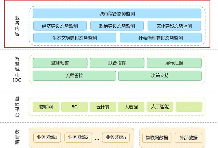 高度融合政府各职能部门现有数据资源,对产业经济、政治文化、资源环境、交通运输、人口民生、公共安全等领域的核心指标进行综合态势监测与分析,辅助管理者全面掌控城市运行态势,提升监管力度和行政效率,推动城市经济建设、政治建设、文化建设、社会建设、生态文明建设各方面相协调。