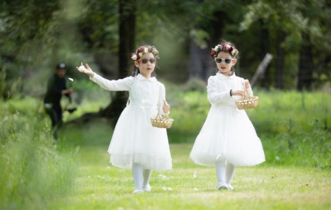 婚后谭晶生下一对双胞胎女儿,两个女儿都穿着如天使一般,但因为长相太过接近,并不能分的很清楚谁是谁,女儿长相还是像爸爸多一些,眼睛小小的,非常可爱。