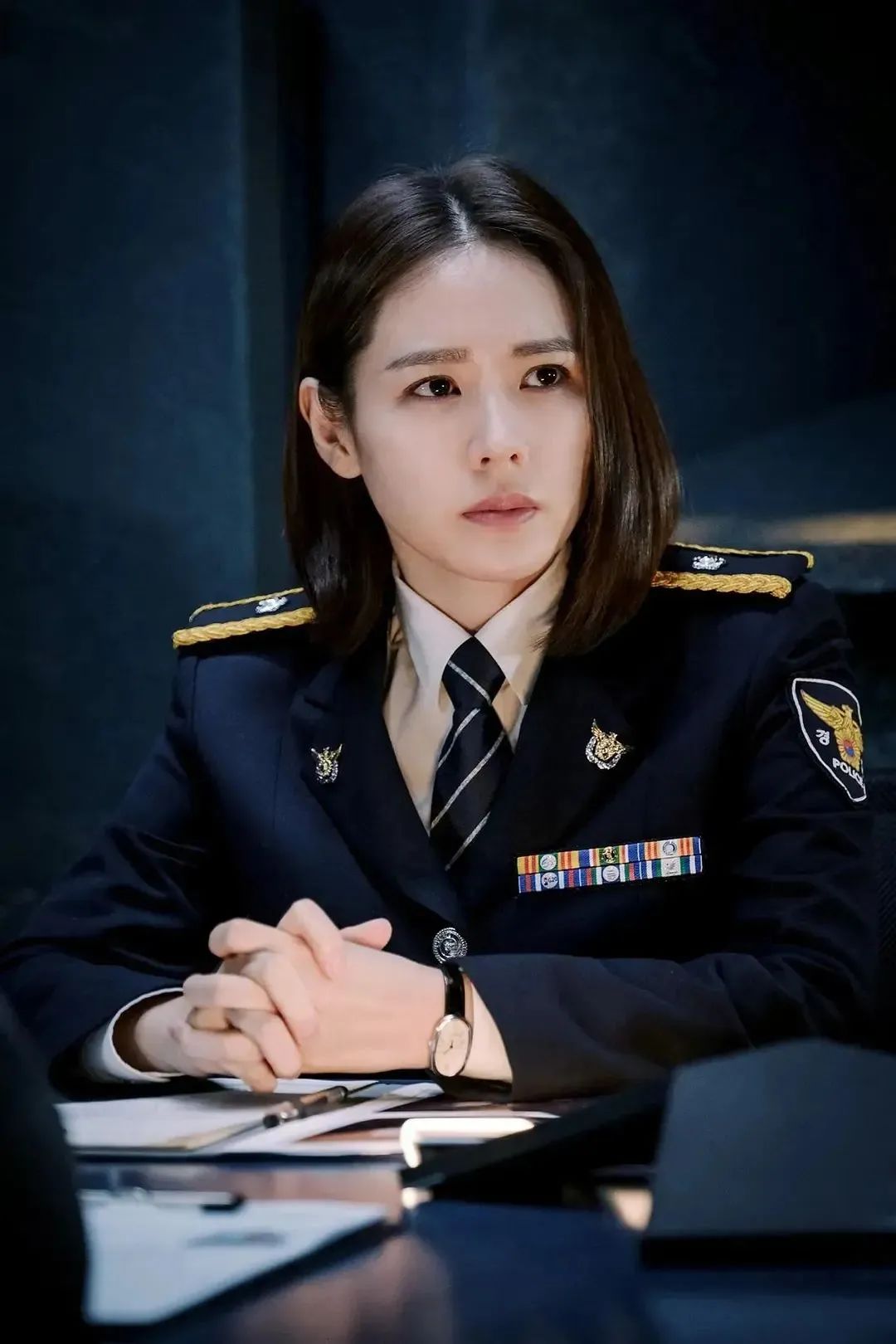 孙艺珍则出演谈判官河彩允,利落的齐肩短发搭配帅气制服,妥妥的女强人。