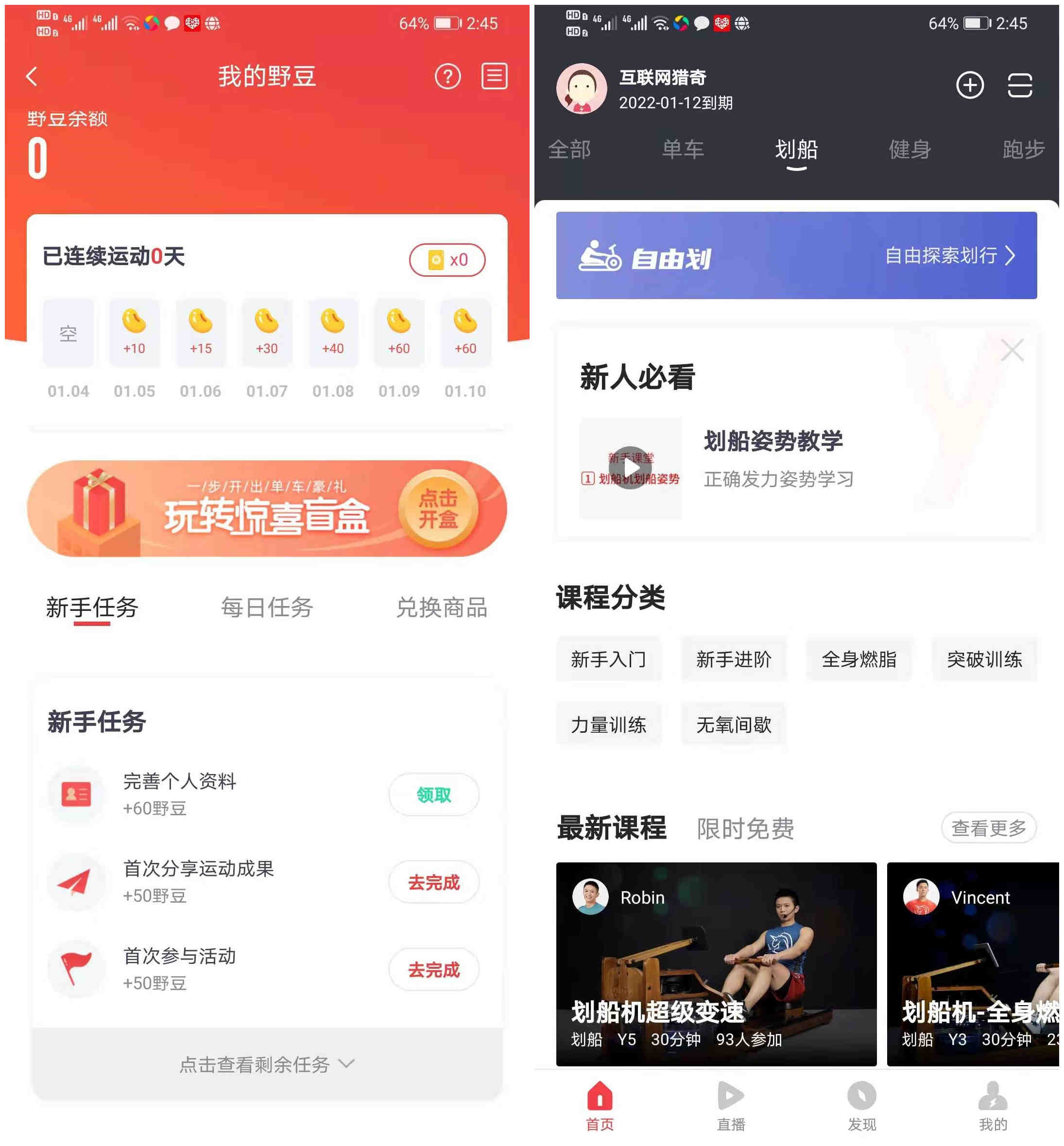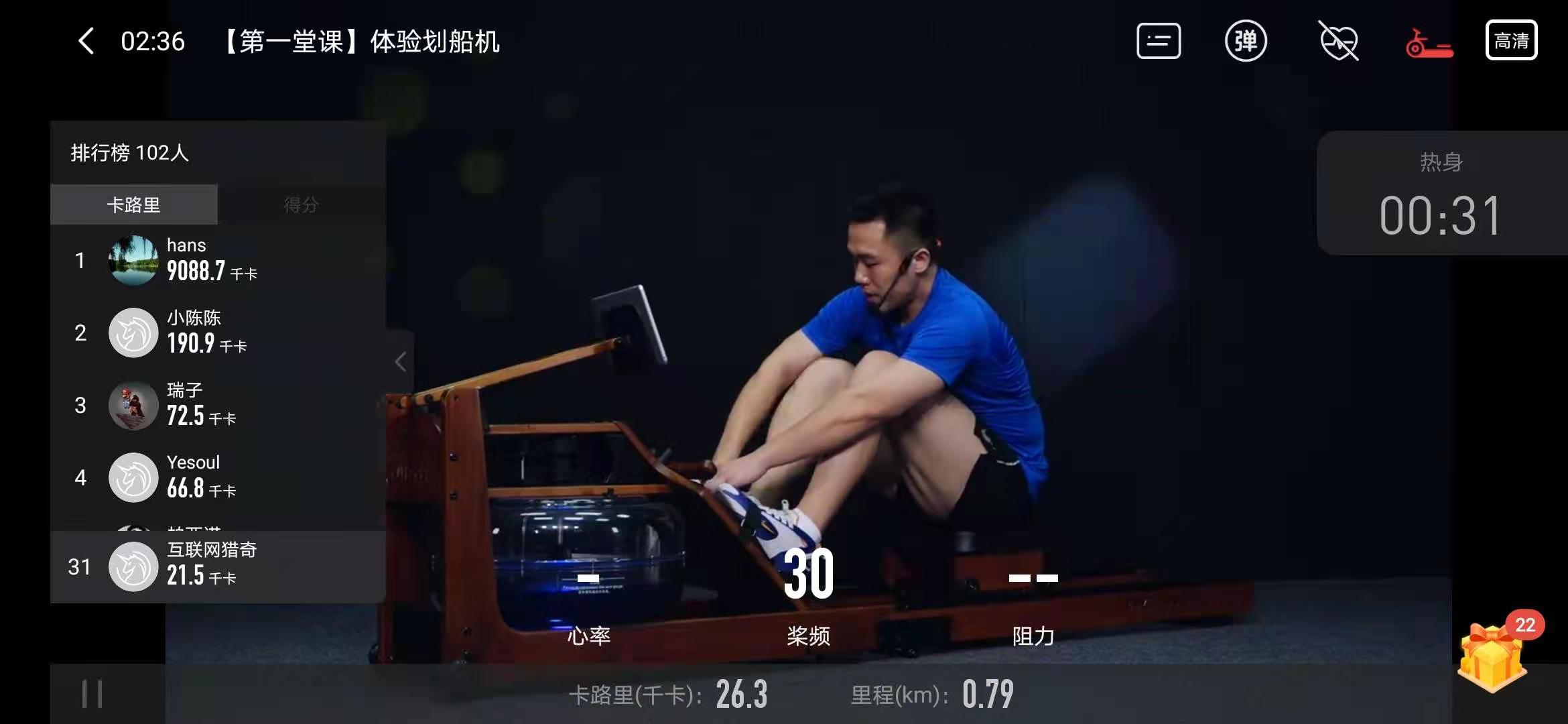 APP里有相应的划船机新手视频教程、有不同的课程预约、有运动历史、运动消耗、运动里程等等,这些都可以自行查看。