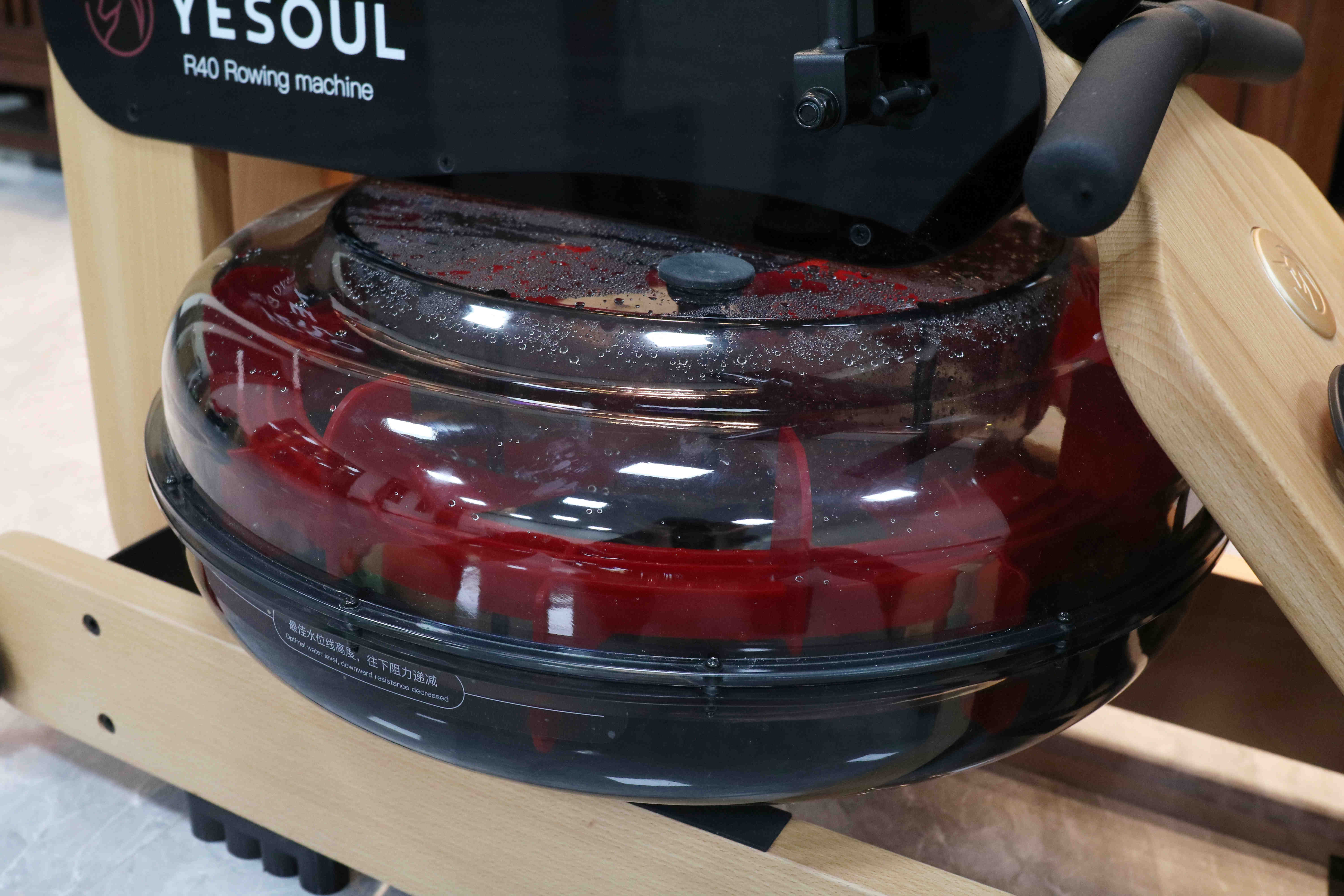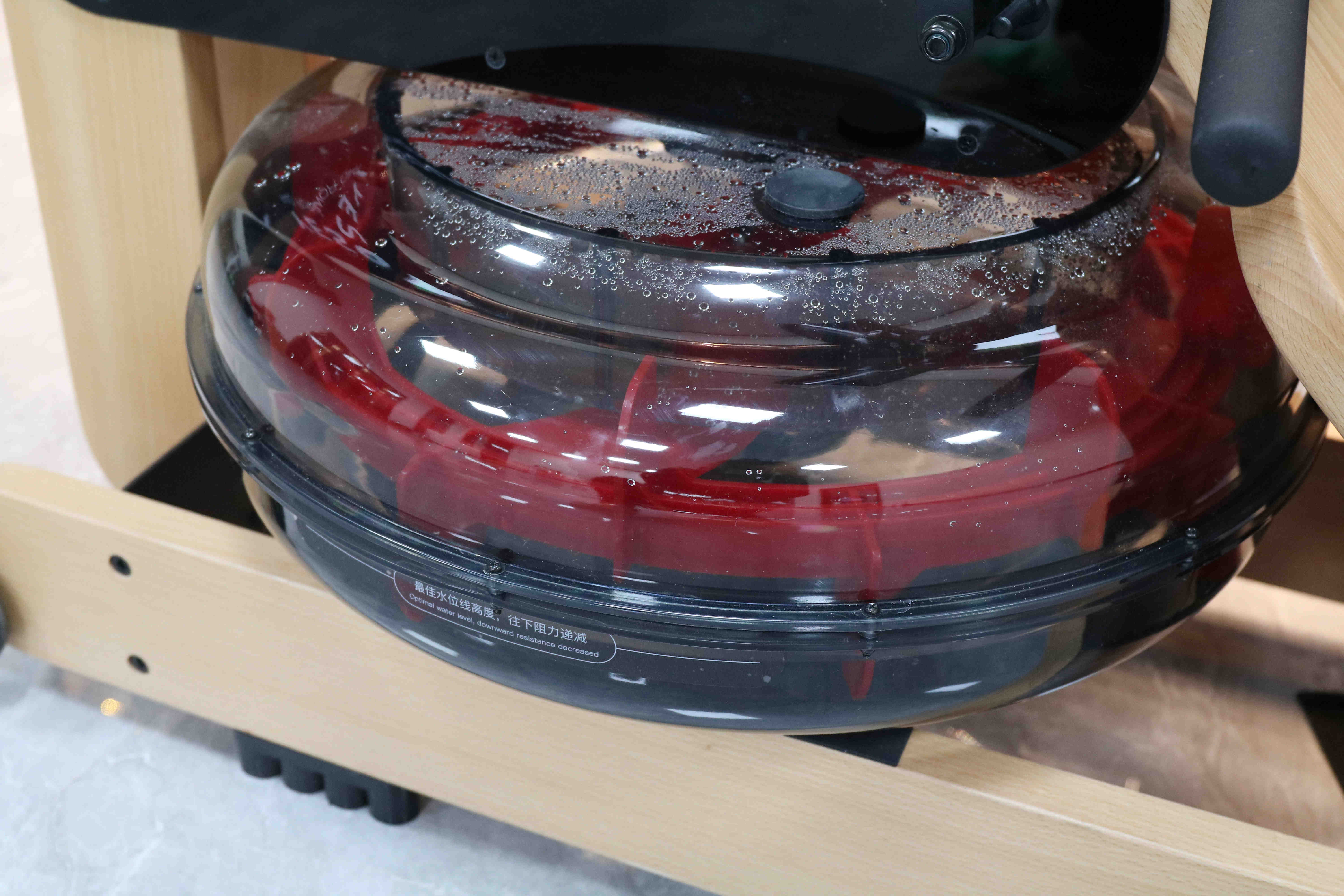 先来看一下野小兽R40划船机重要部件——达到航空级别的精密水箱。不要小看这个灰黑色的半透明组件,它可以运动真实的自然水阻,让我们通过调节野小兽R40划船机水箱中水的阻力来控制锻炼强度。