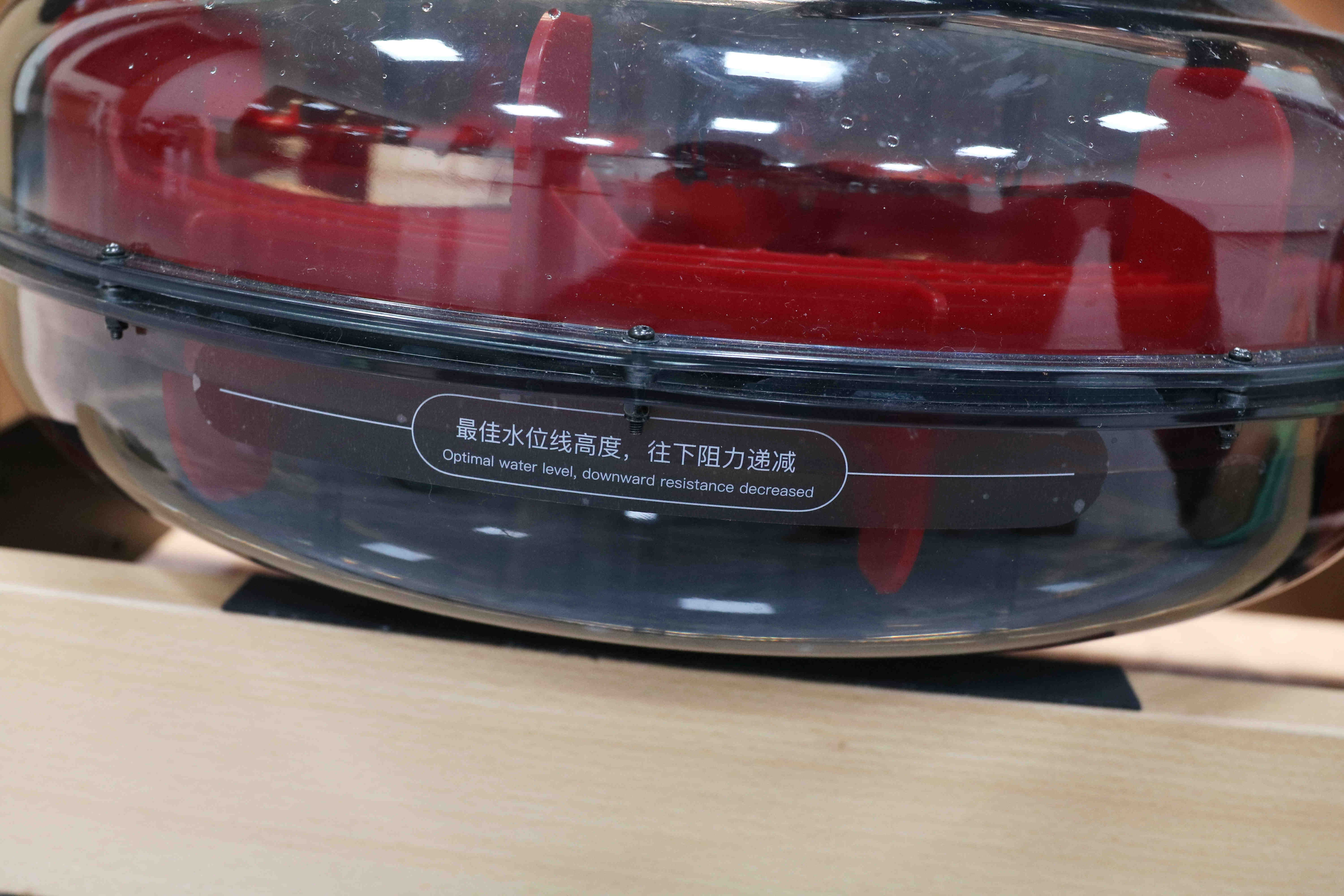 水箱内置的水浆很漂亮,这是全新升级后的16叶双层水浆。水浆静止时,仅仅是红色的颜值担当,但是,在拉动划船机后,你会明显感觉到16双层水浆带来的三重快乐:触觉、视觉和听觉。因为,野小兽R40划船机的双层水浆能够自动调节水阻强度,拉动起来时明显感觉到阻力均匀分散,没有单边需要特别用力的问题。同时,每一次拉动水浆,都会看到水花均匀散开,非常漂亮。而在拉动水浆、水花散开的过程中,会听见哗啦哗啦的声音,就犹如划船一般。