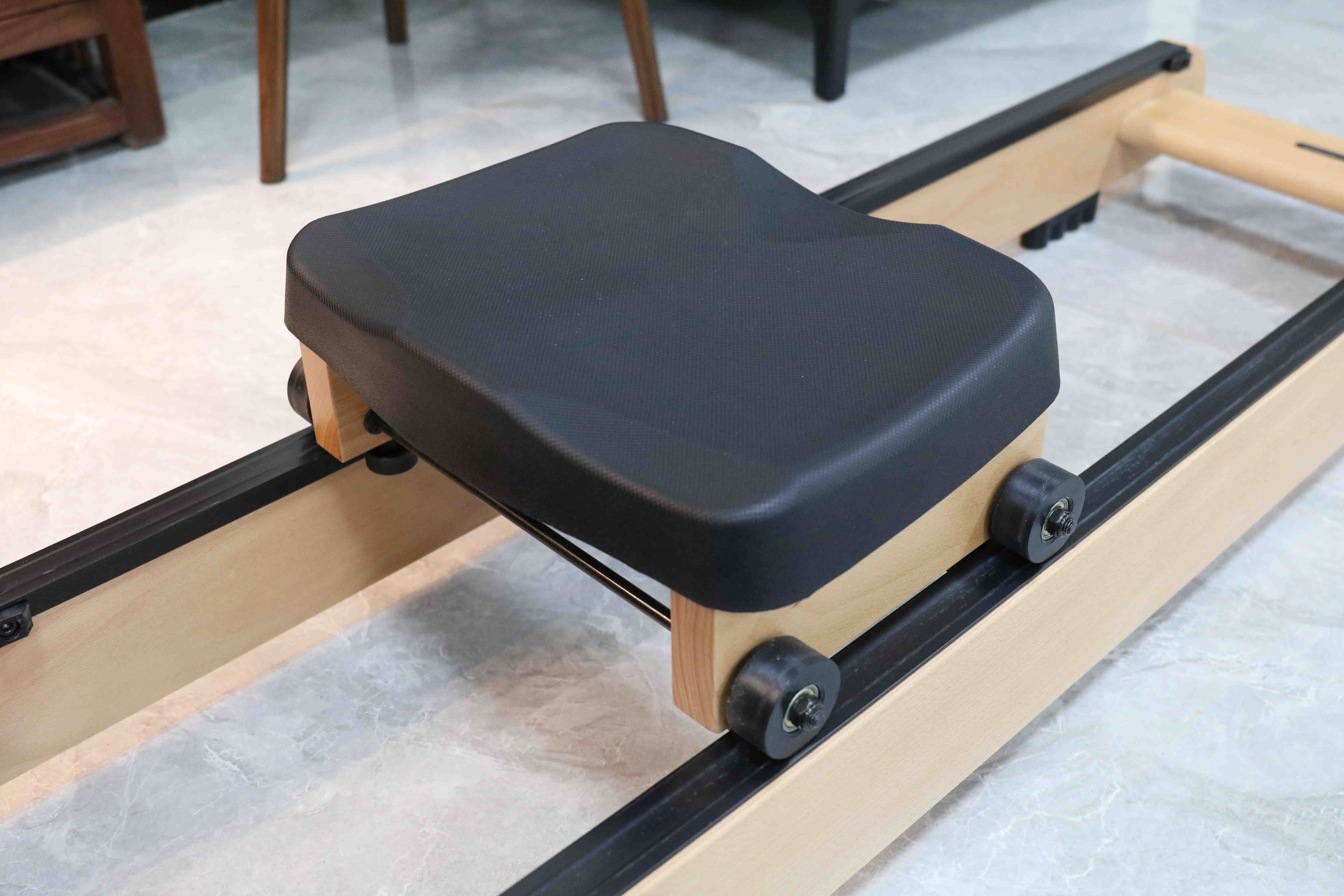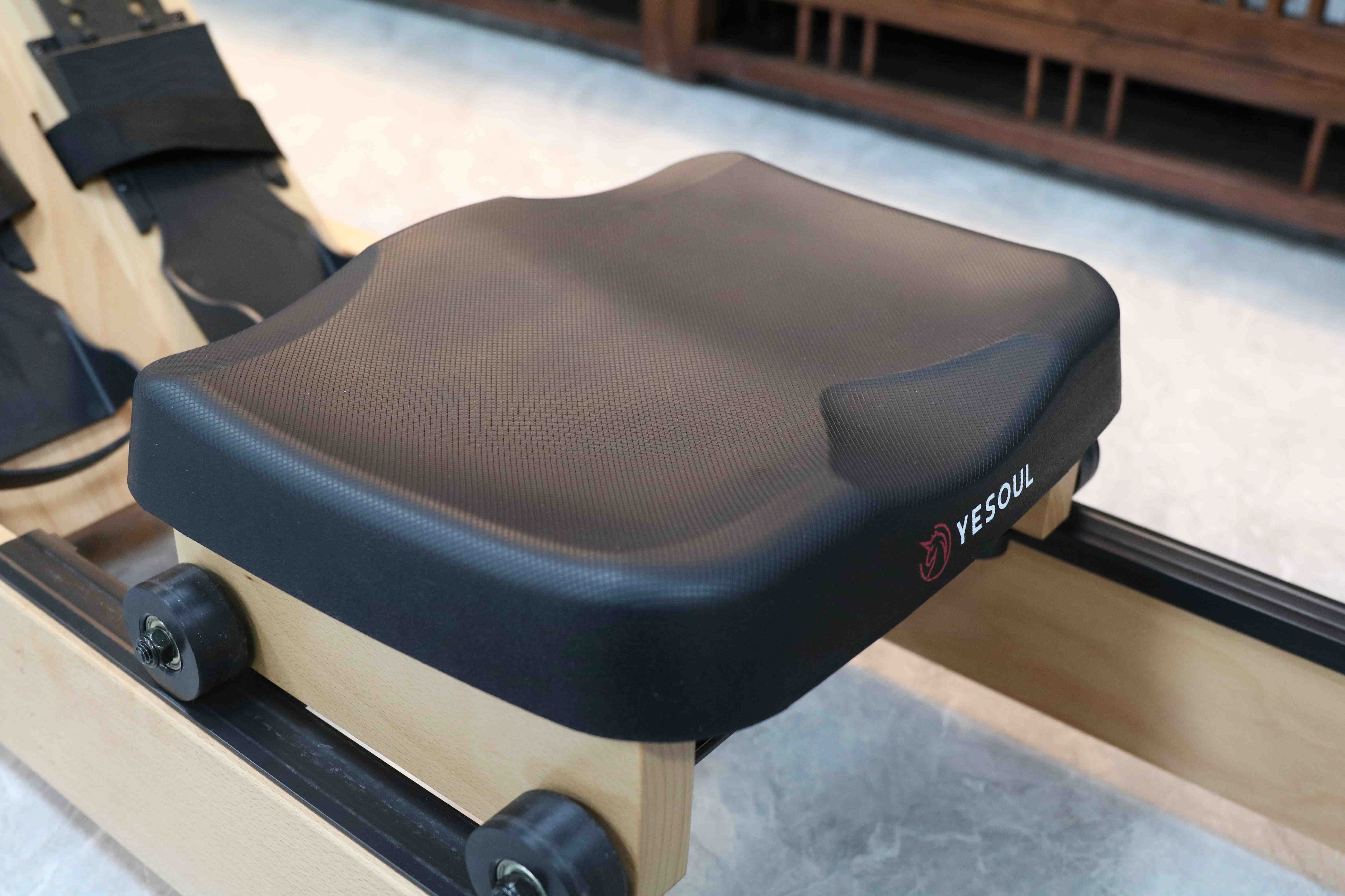 体验野小兽R40划船机,首先就要坐下来感受。我们可以看到,野小兽R40划船机的坐垫并不是平整的设计,而是棱角分明。因为它是根据3D人体工学设计和模拟赛艇座椅设计而成,前端微微凸起,臀部位置稍微凹陷。