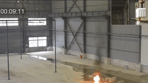 我们经常能在如高铁站,大商场,体育馆等大空间场所看到悬挂在高处的灭火水炮,能够自动探测到低处的火源,并转动水炮口将其火源扑灭。