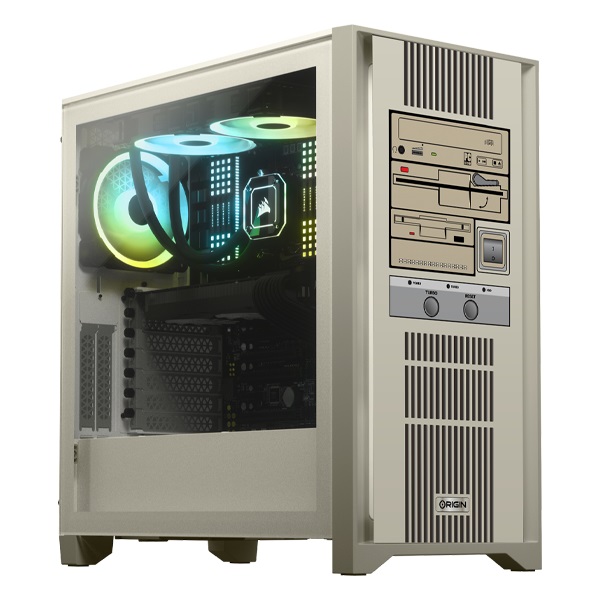 IT之家1月6日消息 国外定制品牌 Origin PC 近日推出了一款复古造型的游戏主机 RestoMod。这款主机采用复古的米黄色外观,正面面板印有怀旧的光驱、软驱等图案,以及竖条格栅散热。尽管外观十分怀旧,但钢化玻璃侧透设计能够看出内部强大的硬件。