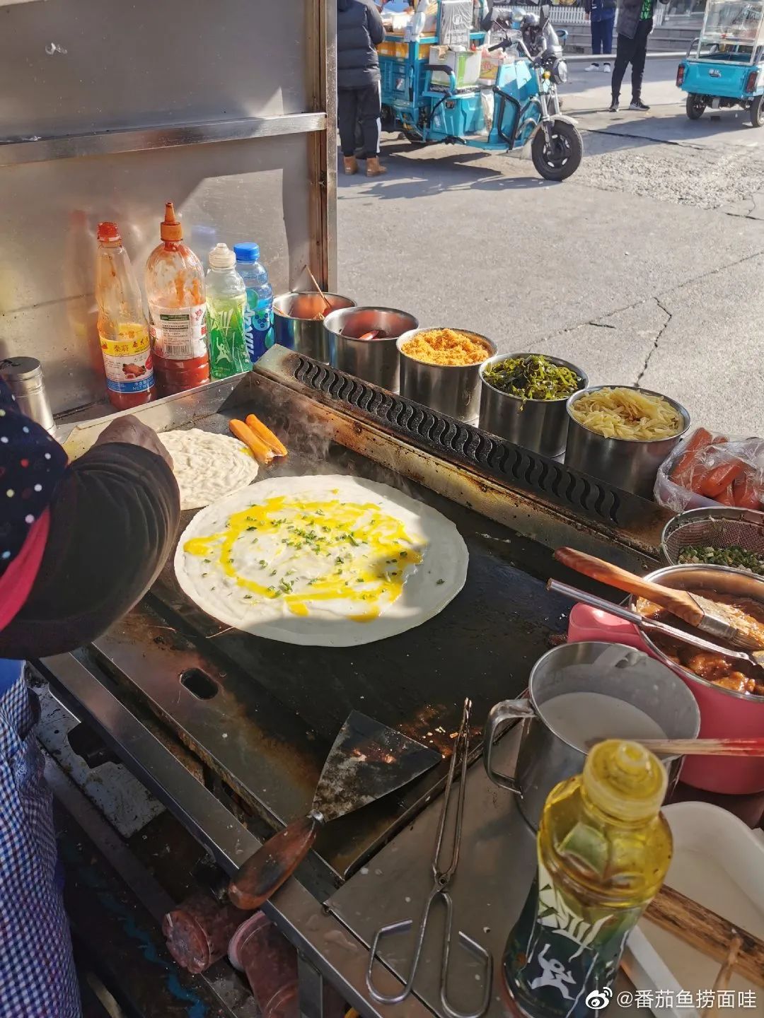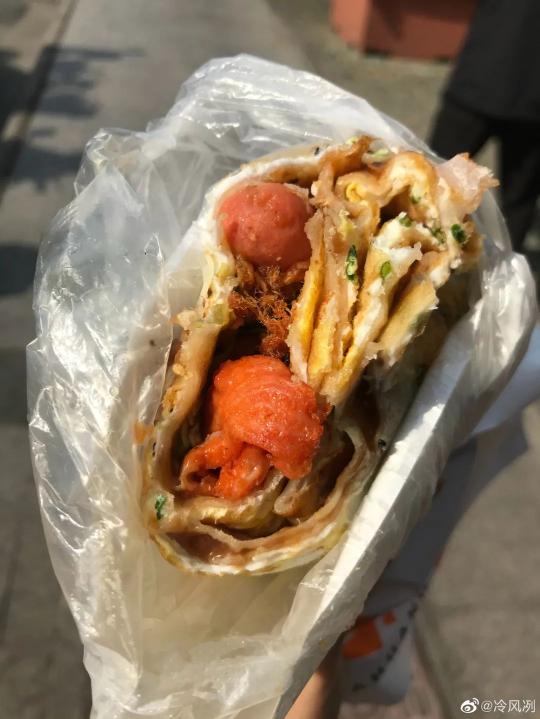 拿到手里软乎乎,每一口都是热乎乎的蛋香气+甜面酱、火腿肠、葱花、榨菜末的复合美味,没什么了不起,但又隔三差五地想吃。