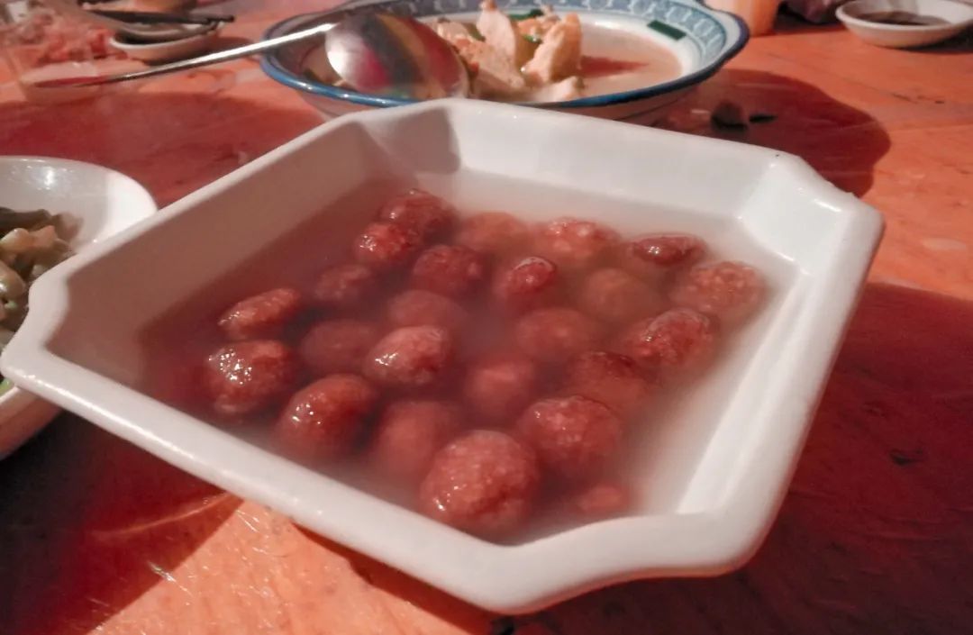 受当地人宠爱的肉圆,俗称肉坨子,用的不是面粉,而是糯米,让这个圆子吃起来更加Q弹耐嚼,