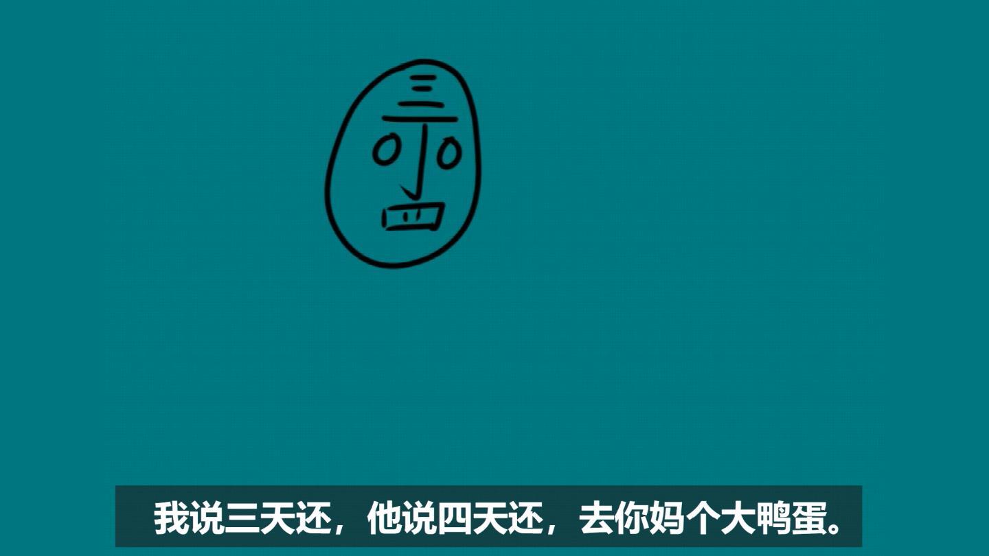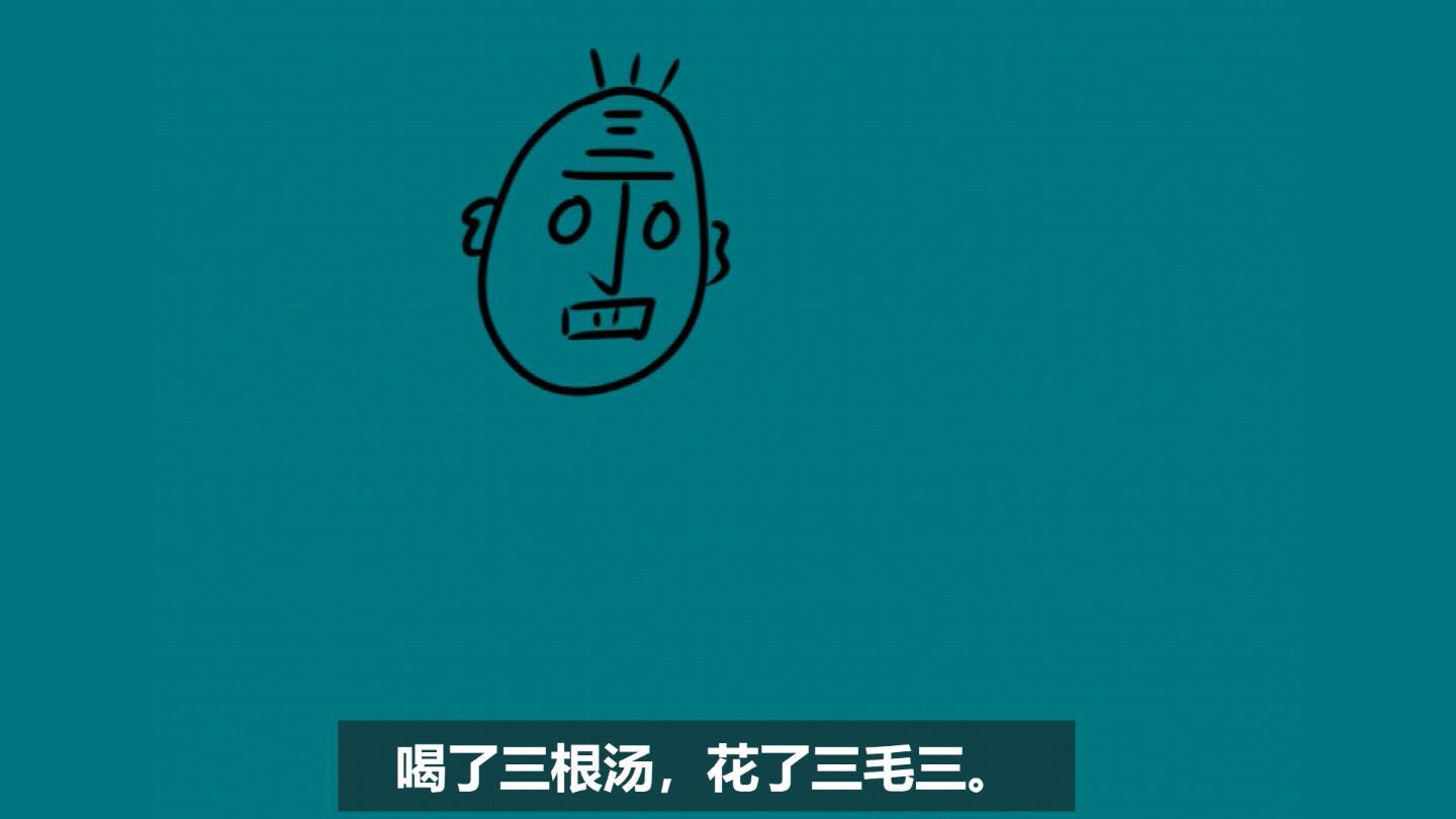 从前有个丁老头,借我俩煤球,我说三天还,他说四天还,去你妈个大鸭蛋,喝了三根汤,花了三毛三,吃了一块大豆腐,花了六毛六,买了串糖葫芦,花了七毛七。