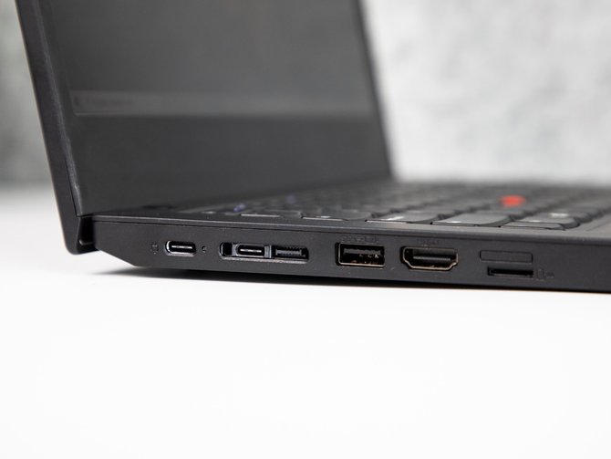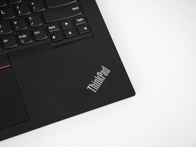 首先是整个机身的A面采用了磨砂喷涂,手感细腻,同时左上角是经典的“ThinkPad”小红点指示灯,整个A面非常地简洁,同时搭配高强度的材料,让整个机身的抗冲击能力更强,质量更加可靠。