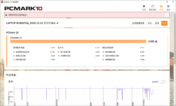 PCMARK 10是一款考量整机综合性能的软件,在这个项目中,软件将会模拟日常使用的情况,对整台电脑进行性能评估,最终给出一个具有参考意义的分数,在这个项目中,搭载AMD锐龙 7 PRO 4750U的ThinkPad L14锐龙版笔记本电脑的最终得分为4583,性能表现非常出色,同样领先竞品。