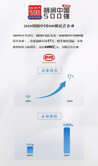 比亚迪向新而行的脚步,并没有被疫情所阻,品牌向上“捷报频传”。比亚迪股份有限公司董事长兼总裁王传福登上《财富》(中文版)“2020年中国最具影响力的50位商界领袖”榜,位列榜单前三,证明了比亚迪创造的社会价值和经济价值在全球范围内得到广泛认同;比亚迪还成为2020 BrandZ最具价值中国品牌100强唯一上榜车企,品牌价值相比2019年上升18%,连续6年上榜并夺得汽车品牌类冠军,显示出强势的品牌韧性和实力。胡润研究院发布的《2020胡润中国500强民营企业》,比亚迪排名跃居第17名,提升速度迅猛,企业价值同步大幅增长,高达4480亿元,位列汽车类第一,引领行业发展。