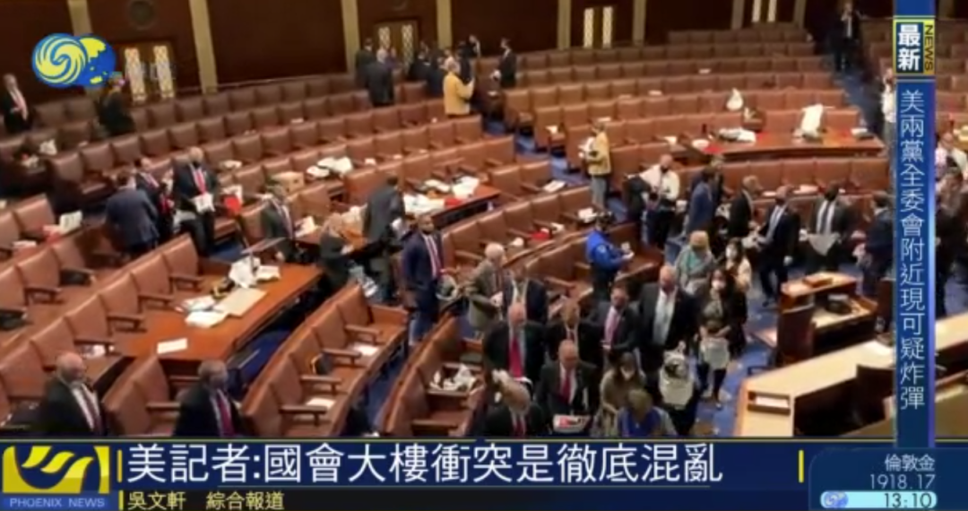 美联社记者贾洛尼克在冲突发生时正在大楼内,她表示现场情况混乱,身处国会内不同地方的记者及国会人员,都被疏散到国会餐厅。她表示不久之前她正在议院内采访,但突然有人告知议员,在圆形大厅发射了催泪弹,议员们要戴上防毒面罩。
