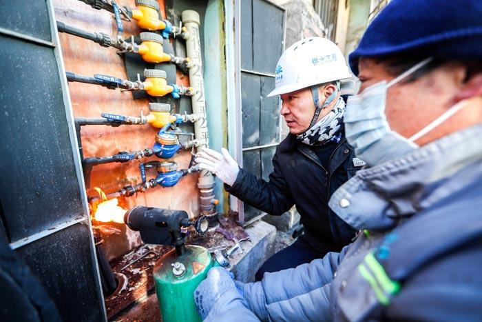 在闫千户小区的一所幼儿园,由于水表和水管被冻造成无法用水。在现场,抢修人员正用“喷枪”给水管、水表化冻。“这一处冻得比较厉害,为了尽快恢复,用汽油喷枪沿着被冻的水管化冻。”户表维修中心沈励强介绍。大约15分钟,水龙头出水了。