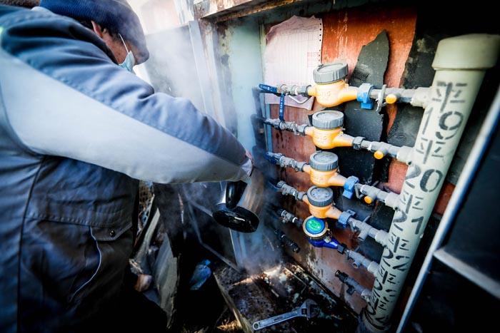 在经五纬十58号楼一单元,5层以下水表集中“罢工”,自来水顺着楼道流淌到马路上。给楼内用户出行带来不变。济南水务集团抢修人员在接到抢修任务第一时间赶到现场。在现场,抢修人员对冻坏的水表止水,清除楼道内漏出的自来水,同时,沿着漏出自来水撒融雪剂、除冰。被冻水表全部更换。“单元防盗门没关,加上昨天夜里气温太低,水表就冻了。早上9点多,就开始从水表箱里外网喷水,我就打了小白热线,抢修人员很快就到了。水务集团的工作人员真是很辛苦,这么冷的天,为我们老百姓解决困难,正是太感谢了。”家住一单元102的王先生讲到。