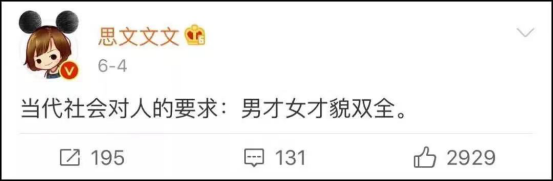 另一位脱口秀演员还说:当代社会对人的要求:男才女才貌双全。