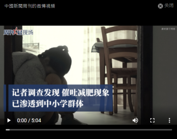 学生说,节食减肥的风气在中小学校园中十分盛行,很多女同学会选择不吃晚饭、一天中多次称体重,模仿社交网络上流行的“锁骨放硬币””反手摸肚脐“等展现身材的视频,追求“白瘦幼”审美。