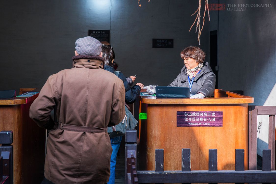 进门后有两个柜台,上面写着:“鲁迅故居免费开放,凭身份证刷证入园”的字样。鲁迅故里作为著名的5A级景区,能够免费为游客开放,是非常值得称赞的,据说这是浙江即杭州西湖免费后,第二免费开放的5A级景区。