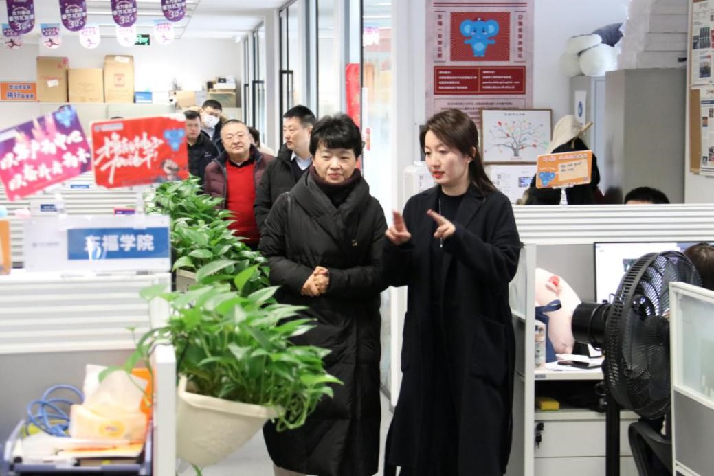 1月7日下午,上海市总工会权益保障部部长邵新宇、上海市职工保障互助会副主任曹宏亮一行莅临东方福利网上海总部视察指导。周桥街道办事处主任贾跃能、青海省果洛州委副秘书长江轶群、长宁区区总工会副主席秦莉文、周桥街道办事处副主任李虹随行参观指导。