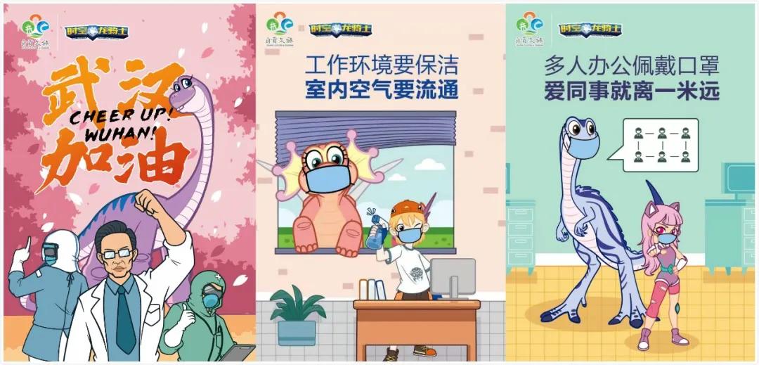 《时空龙骑士》动画本身传达着勇敢、关爱等正向能量,作为自贡城市IP在疫情期间化身正能量公益“使者”创作了一系列抗疫防疫公益海报、视频,在自贡各办公单位、主流商圈以Q萌卡通形象严肃活泼科普防疫知识,给疫情期间的低沉情绪带来视觉愉悦。