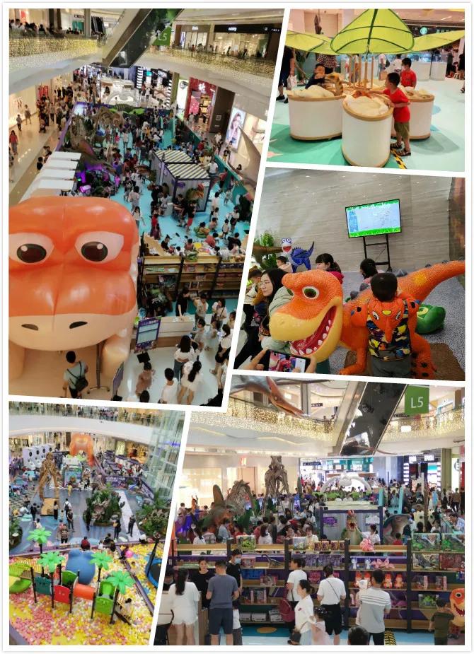 在今年国庆期间,同时在江苏吴江凤凰荟、南京龙湖购物中心、合肥漫乐城、自贡华商爱琴海购物公园等四个城市大型商业中心的《时空龙骑士》主题互动展区几乎天天爆满。让人惊叹的动态仿真恐龙、儿童互动游乐区、化石展柜区让小朋友体验重返侏罗纪的炫酷场景,每一个IP巡展区都成为了商业中心最火爆的人气聚集地。
