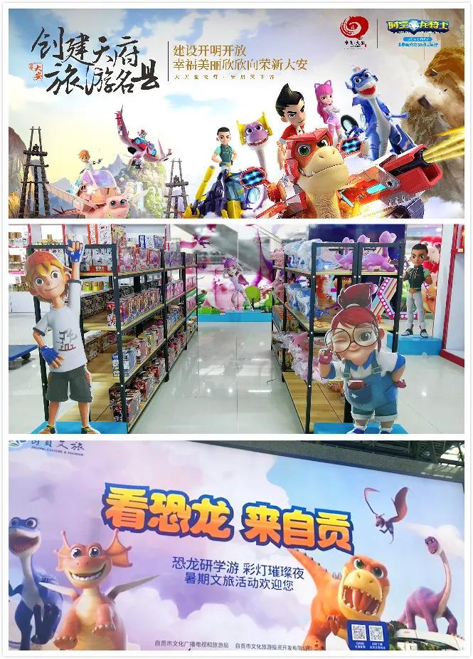 凭借超高人气,还在自贡大安区创建天府旅游名县宣传手册以及自贡恐龙研学游活动中担任“形象大使”、在中国·川南皮革城特色文旅商品馆中打造时空龙骑士创意周边馆等,随着《时空龙骑士》在自贡城市的不断深化应用,会让每一个来到自贡的游客感叹“恐龙之乡”乃实至名归。