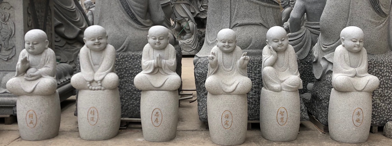 寺庙的佛像神圣而又庄严,在寺园林休息等处经常能见到一些不一样的石離摆件一小沙弥石雕。小沙弥摆件有祈祷平安,幸福,快乐,积德的作用,不论摆在哪里都自成风景,百般姿态、动静皆宜!
