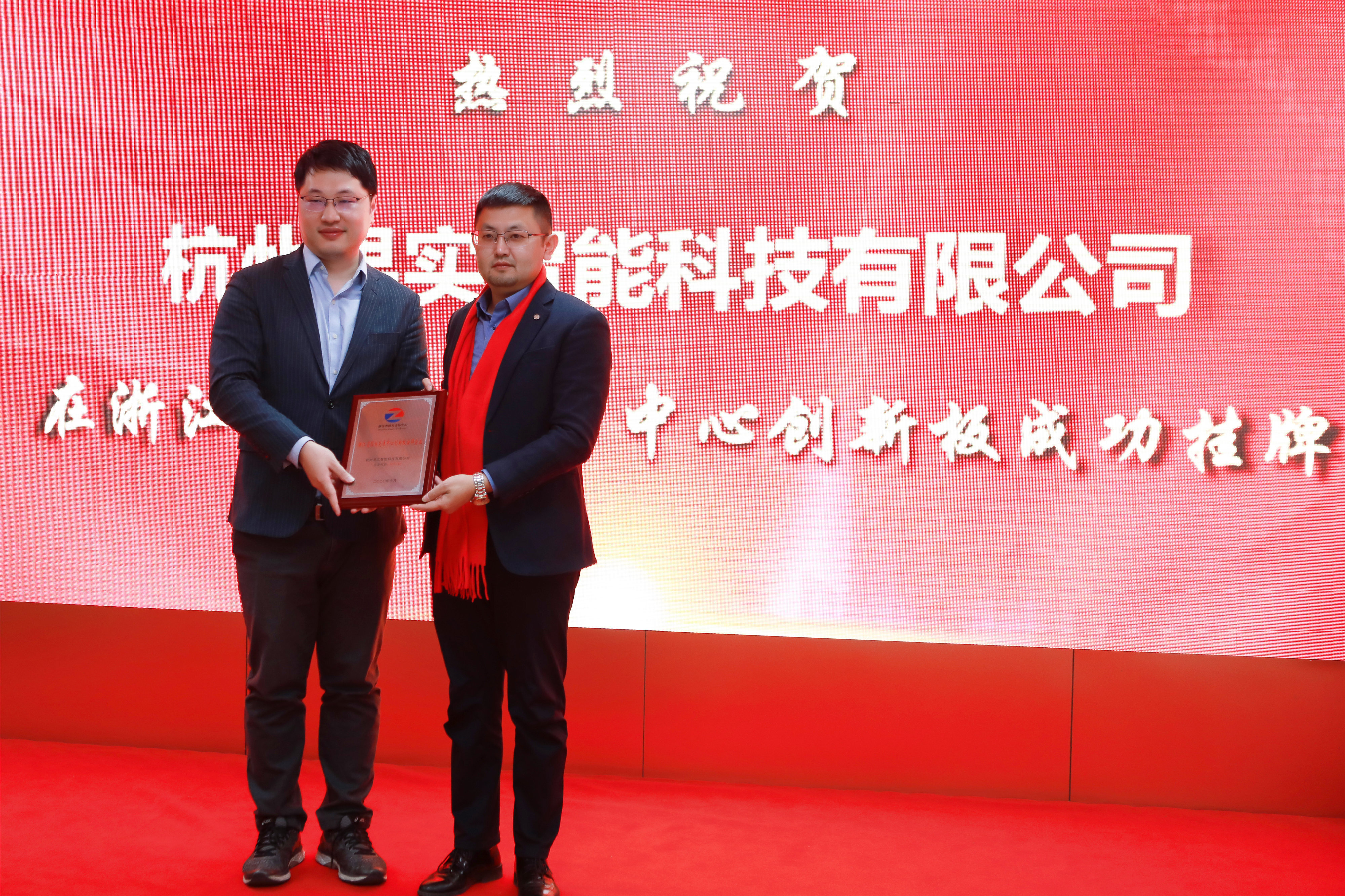 讲话结束后,浙江省股权交易中心王遵峰总经理授予周交龙董事长企业挂牌证书,标志着果实智能科技在浙江省股权交易中心创新板成功挂牌。