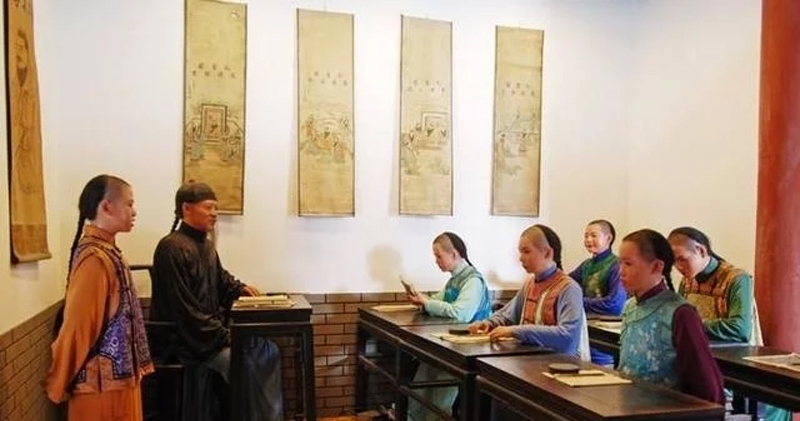 其授課,先讀生書,視生秉性,蓋數十上百字有差。待生書熟誦,再下,然翌日必先覆,不能則不授生書。由是二三日,三五日,總前以覆,要之,通連不忘。即一書畢,大皆能頭尾誦也。謂包本。是讀也,非若口語,乃唱,依先生調。其課程,上午讀誦,正午習字,晚對課。對課,乃對聯也,初二三字,後五七字,蓋為作詩備也。