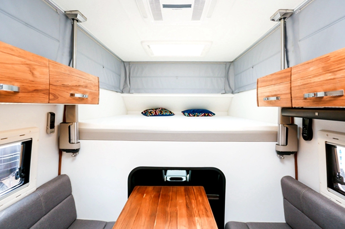 再看细节方面,内饰豪华,整个驾驶室内使用的是纳帕小牛皮工艺,座椅有通风、按摩和加热功能,什么时候坐上去都不会“冻屁股”,安安心心开车旅行,真的特别自在!还有2张豪华大床的配置,满足5人的睡眠需求,这个冬天也别错过旅行的好机会,不如就和福特F150越野房车一起去探索冬天的美丽吧!