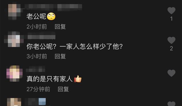 许多网友看到照片,纷纷在评论区里留言夸赞戴娇倩漂亮,并好奇为什么戴娇倩的老公没有出镜,还有网友意味深长的感叹真的是只有家人。