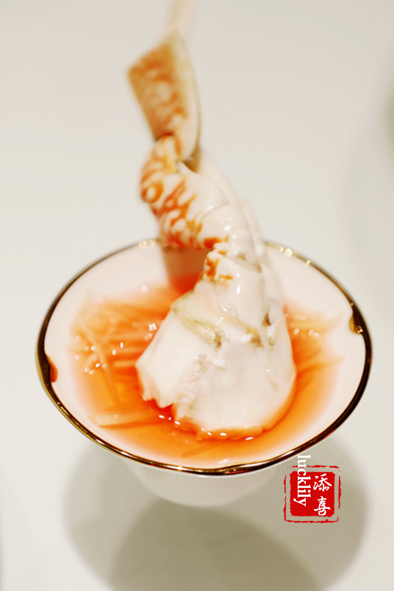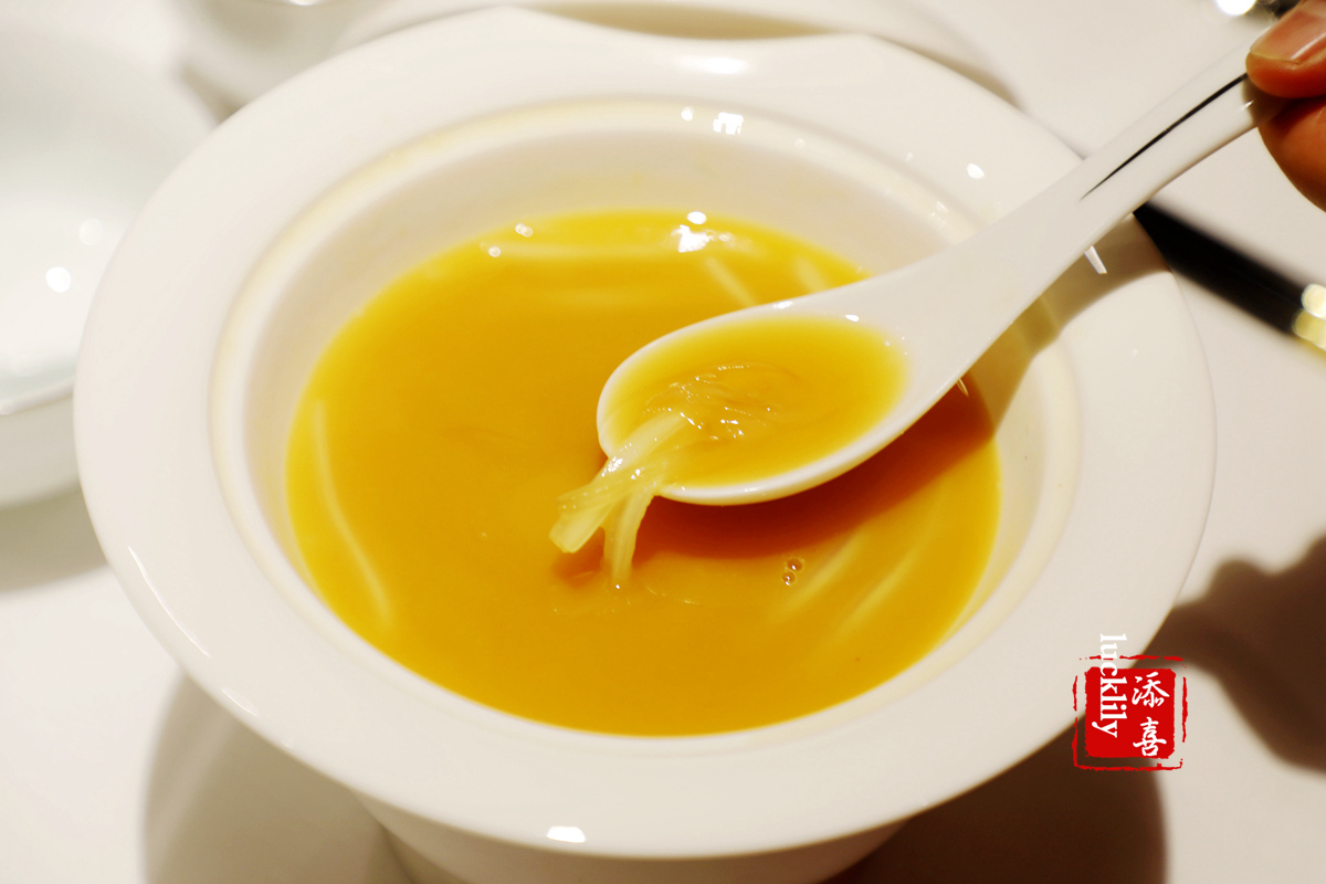 吃过一次之后每来必点的酸辣翅,我是在东富第一次吃到酸辣味的鱼翅羹,汤汁醇郁,感觉特别的开胃,此后就一直非常的喜欢。东富酒家的原则之一是从不用半成品食物和调料,惹味调鲜的酸汤是大厨在熬制高汤中加入了美国辣椒仔和柠檬汁。浓汤鸡煲翅固然经典,酸汤鱼翅更是鱼翅界的清流。